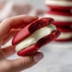 These Tasty Red Velvet Cookie Sandwiches combine soft, cocoa-infused red velvet cookies with a rich and creamy cream cheese filling. Perfect for special occasions or just a delicious treat, they offer a delightful twist on classic red velvet cake flavors in a handheld form.
