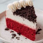 This Red Velvet Oreo Cheesecake combines the vibrant color and classic flavor of red velvet cake with the creamy indulgence of cheesecake and crunchy Oreo cookies. A luscious, smooth red velvet batter studded with Oreo pieces bakes atop a rich Oreo cookie crust, then is chilled and topped with whipped cream or cream cheese frosting for an irresistible dessert perfect for celebrations or any special occasion.