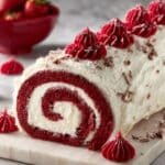 Keywords: Red Velvet Yule Log, Christmas dessert, holiday cake roll, cream cheese filling, festive cake