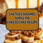 Keywords: Salted Caramel Apple Pie Cheesecake, cheesecake recipe, apple pie cheesecake, salted caramel sauce, fall dessert, holiday dessert
