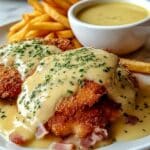 This Savory Malibu Chicken recipe features tender, thinly pounded chicken breasts breaded to a golden crisp, topped with savory ham and melted Swiss cheese, then baked to perfection. Finished with a creamy, tangy mustard sauce with a hint of honey and lemon, this dish is a delightful balance of flavors and textures, perfect for a satisfying dinner.