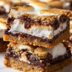 Store the S’mores Cookie Bars in an airtight container at room temperature for up to 3 days. For longer storage, refrigerate for up to a week or freeze individually wrapped bars for up to 3 months. Reheat refrigerated or frozen bars briefly in the microwave to soften the marshmallow layer before serving.