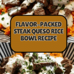 Keywords: steak quesco rice bowl, queso rice bowl, flank steak recipe, Mexican-inspired rice bowl, easy dinner bowl, cheesy steak bowl, black bean rice bowl