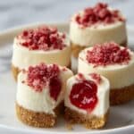 Keywords: strawberry crunch cheesecake bites, no bake cheesecake bites, easy dessert recipe, make ahead dessert, strawberry shortcake crumble, party desserts, summer dessert ideas