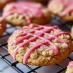 These Strawberry Crunch Cookies combine tender, buttery dough with a delightful topping of freeze-dried strawberries and crushed vanilla wafers. Finished with a sweet pink glaze, they make for a charming treat that’s perfect for sharing or enjoying as a special snack.