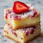 Delight in these zesty and sweet Strawberry Lemon Bars, featuring a buttery crust infused with fresh lemon juice and bursting with juicy strawberries. Perfectly baked to a golden edge and dusted with powdered sugar, these bars offer a refreshing dessert or snack that balances tartness and sweetness in every bite.