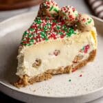This Sugar Cookie Cheesecake combines the soft, creamy texture of classic cheesecake with the nostalgic flavor of sugar cookies. Topped with white chocolate ganache and festive cookie dough balls, it’s a delightful dessert perfect for any celebration.