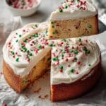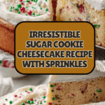 This Sugar Cookie Cheesecake Dessert combines the best of two beloved treats: soft sugar cookies and creamy cheesecake. With festive sprinkles and a luscious white chocolate ganache, it’s a show-stopping dessert perfect for any celebration or cozy night in.