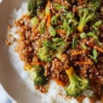 - Serve Over Rice: Spoon cooked white or brown rice into serving bowls. Top with the teriyaki turkey and vegetable mixture. Garnish with diced green onions and optionally sprinkle with toasted sesame seeds or chili flakes for extra flavor. Serve warm and enjoy.