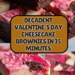 These irresistible Valentine’s Day cheesecake brownies combine rich chocolate and creamy cheesecake in one delightful treat. Ready in just 35 minutes, they’re perfect for sharing with someone special or enjoying as a decadent dessert.